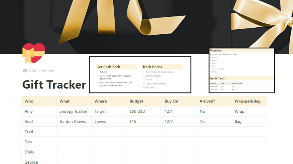 A gift tracker for notion!